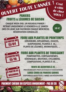 Vous trouverez – ci-dessous – les photos des fruits et légumes mais également des fleurs qu’ils vous proposent à longueur d’année – selon les saisons !